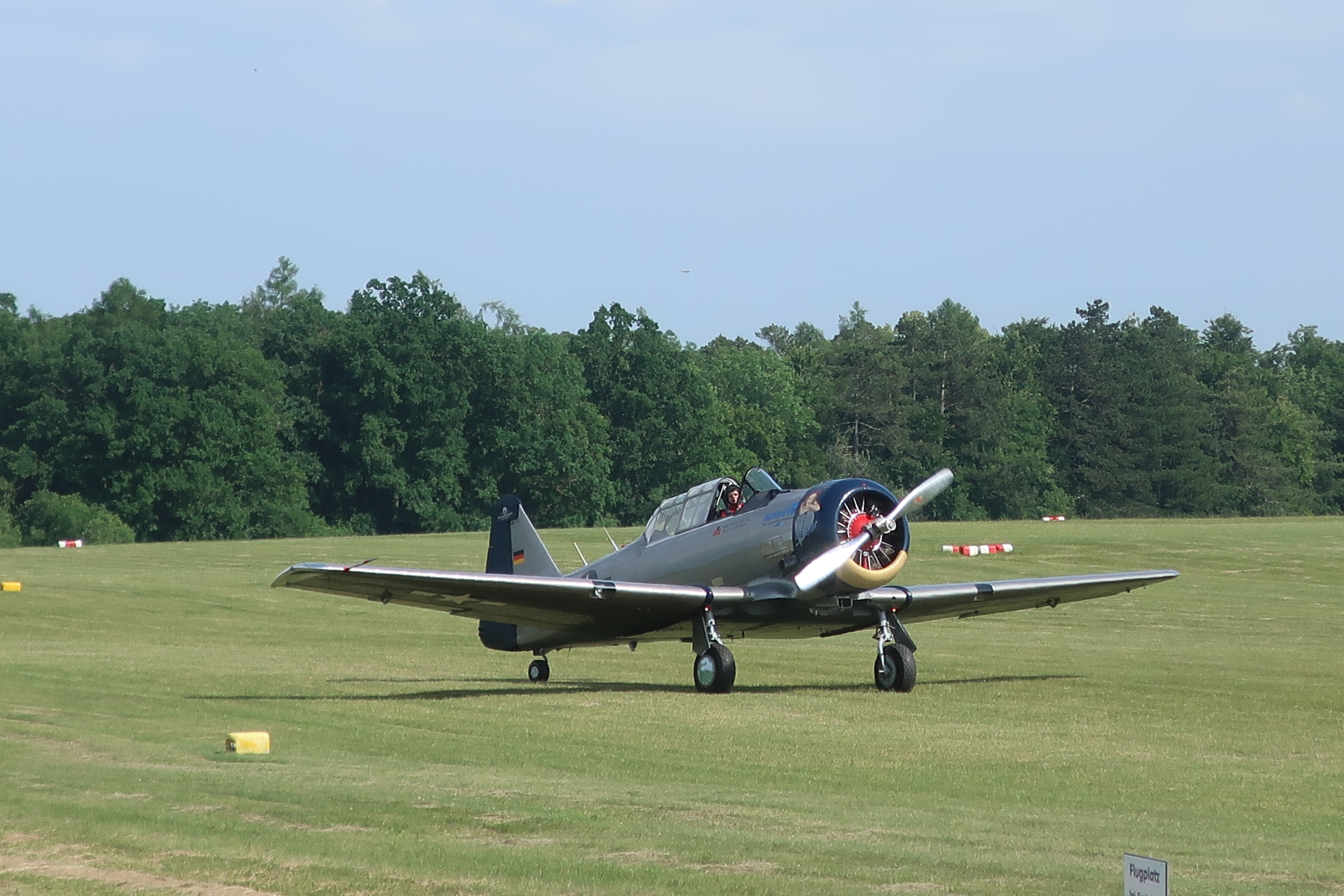 Schönes Bild der North American AT-6D bei der Landung am Fliegerfest 2025 in Eichstätt.